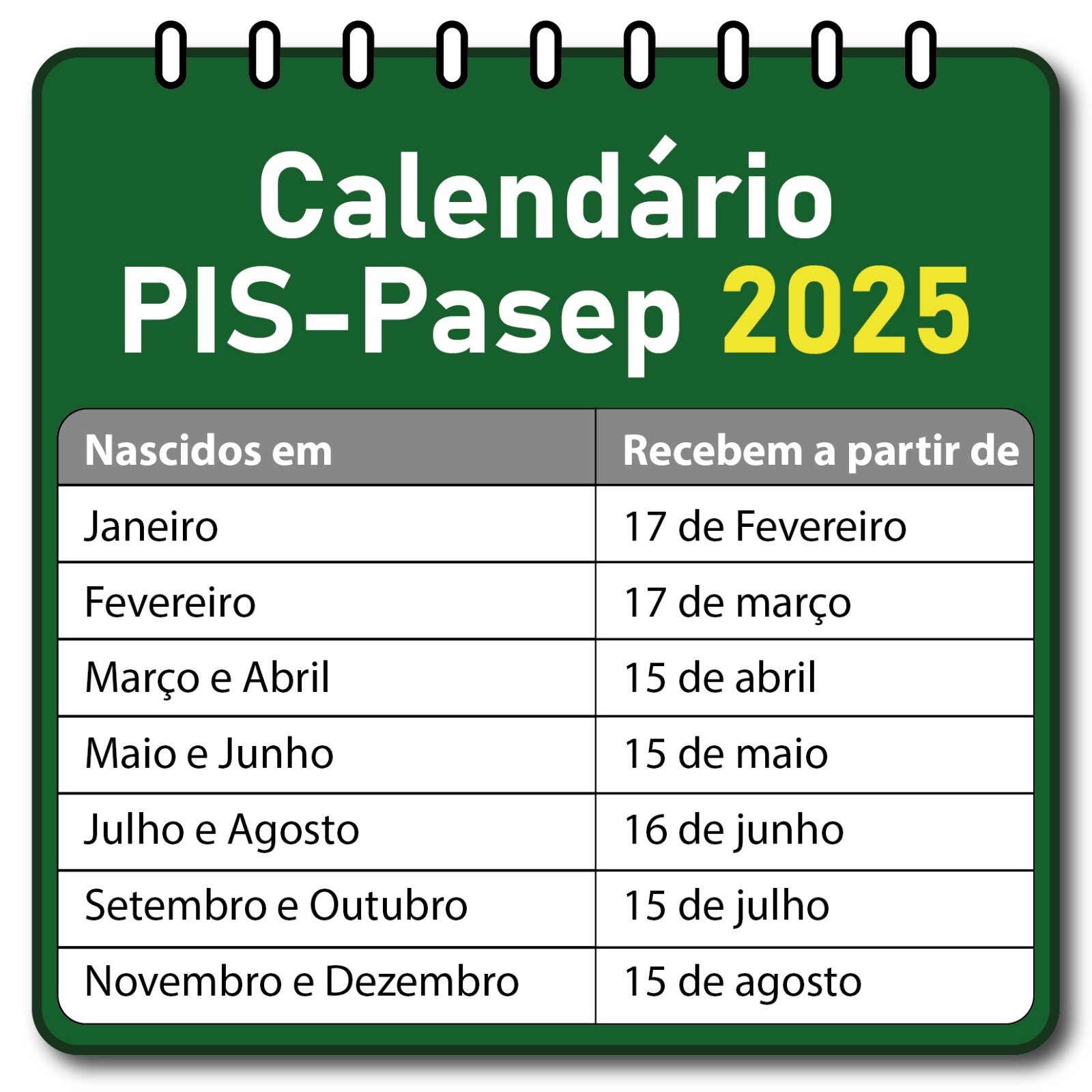 - PIS (Programa de Integração Social ) veja o mês de aniversário;