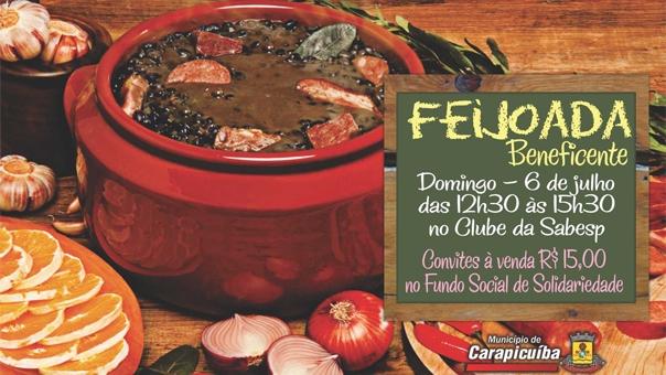 No próximo domingo, 6 de julho, o Fundo Social de Solidariedade (FSS) do município de Carapicuíba, realiza a tradicional Feijoada Beneficente, que acontece a partir das 12h30 no Clube da Sabesp. O evento, que acontece anualmente, tem por objetivo arrecadar fundos para o Casamento Comunitário, que está na sua quinta edição, além de outras iniciativas do FSS.