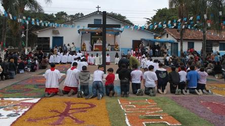 A celebração de Corpus Christi na Praça da Aldeia de Carapicuíba acontece na quinta-feira, 15 de junho. Às 8h da manhã começa a montagem dos tradi ...