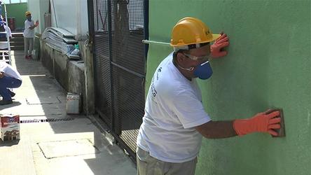 A primeira turma de 25 alunos do curso de pintor de paredes, oferecido pela prefeitura de Carapicuíba, por intermédio da Secretaria de Desenvolvi ...