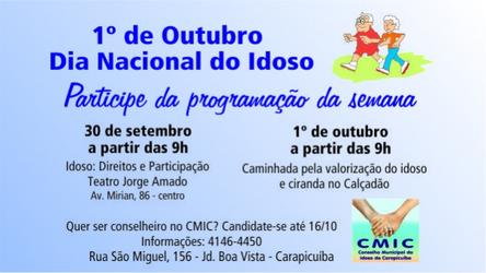 A Semana Nacional do Idoso será comemorada em Carapicuíba a partir de quarta-feira, 30, com atividades voltadas à terceira idade. Organizada pelo ...