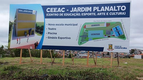 No último domingo, a Prefeitura fez o lançamento das obras do Ceeac (Centro de Educação, Esporte, Arte e Cultura), no Jardim Planalto. O novo complexo terá nova escola, teatro, ginásio esportivo e piscina, em mais de 10.000 m² de área. Cerca de cinco mil carapicuibanos participaram do evento.