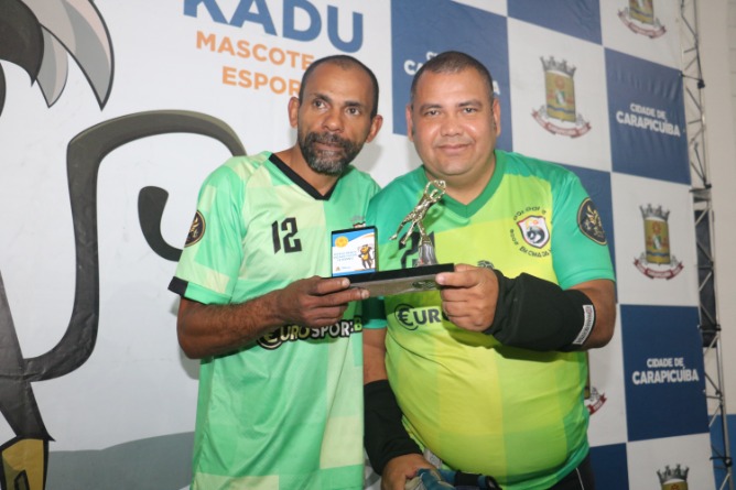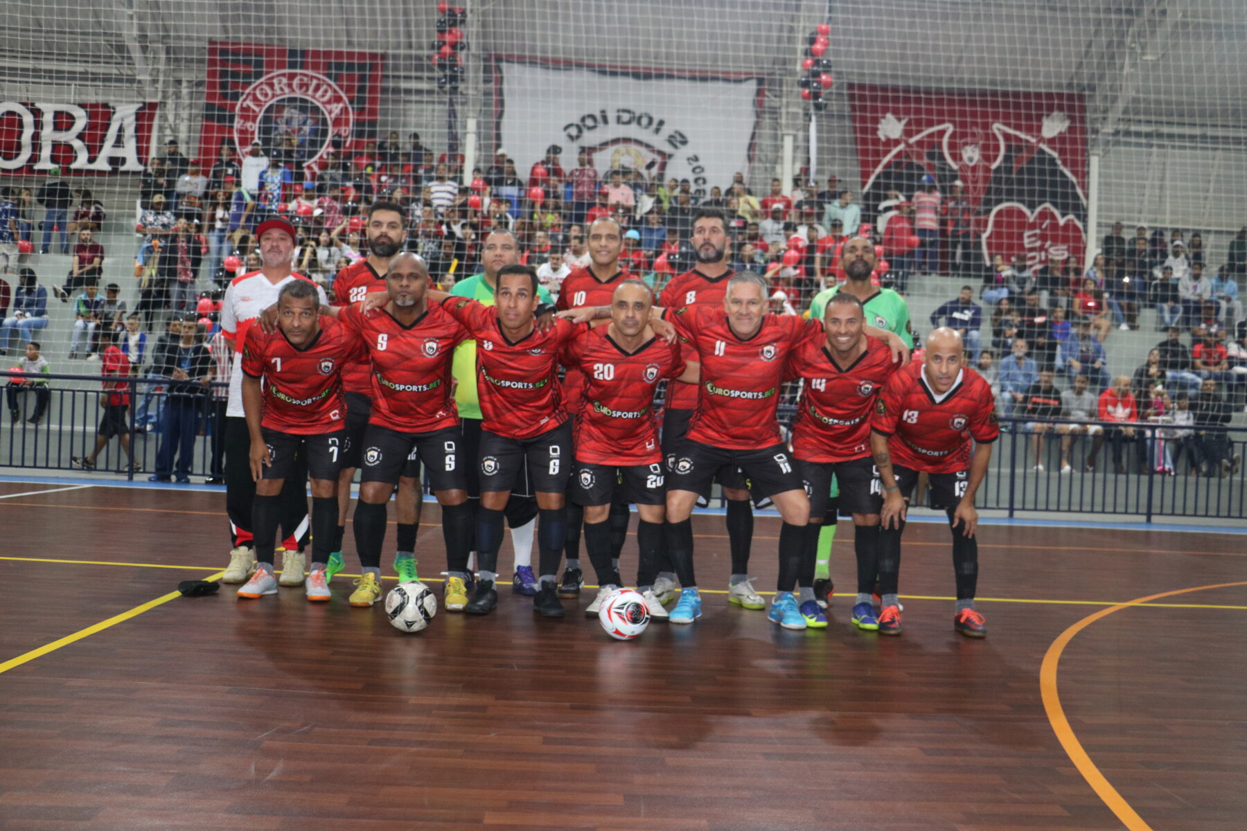 A equipe do Em Cima da Hora comemora o título do Veterano 2022, ao derrotar o JK na grande final da competição, realizada na sexta-feira, 1, no Tancredão.